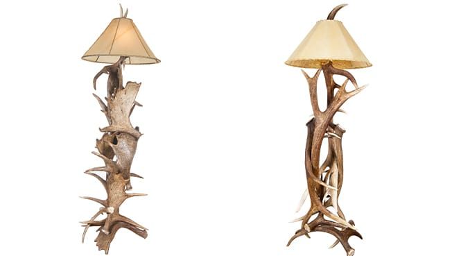 Floor lamp. Great for an office, great room, reading area or any place you need a little extra light. . Picture shown is moose (Left) and elk (right) but the floor lamp can be custom made from just about any type of Antler. Shades do not come with lamps but are available for purchase at an additional cost.