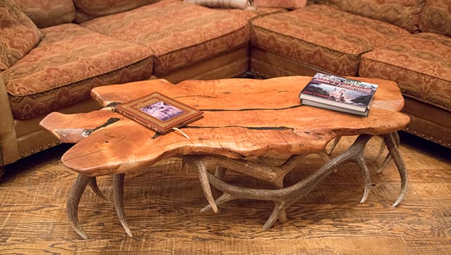 MESQUITE WOOD COFFEE TABLE WITH ELK BASE