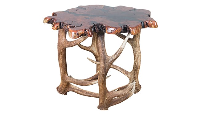 MESQUITE WOOD END TABLE WITH ELK BASE